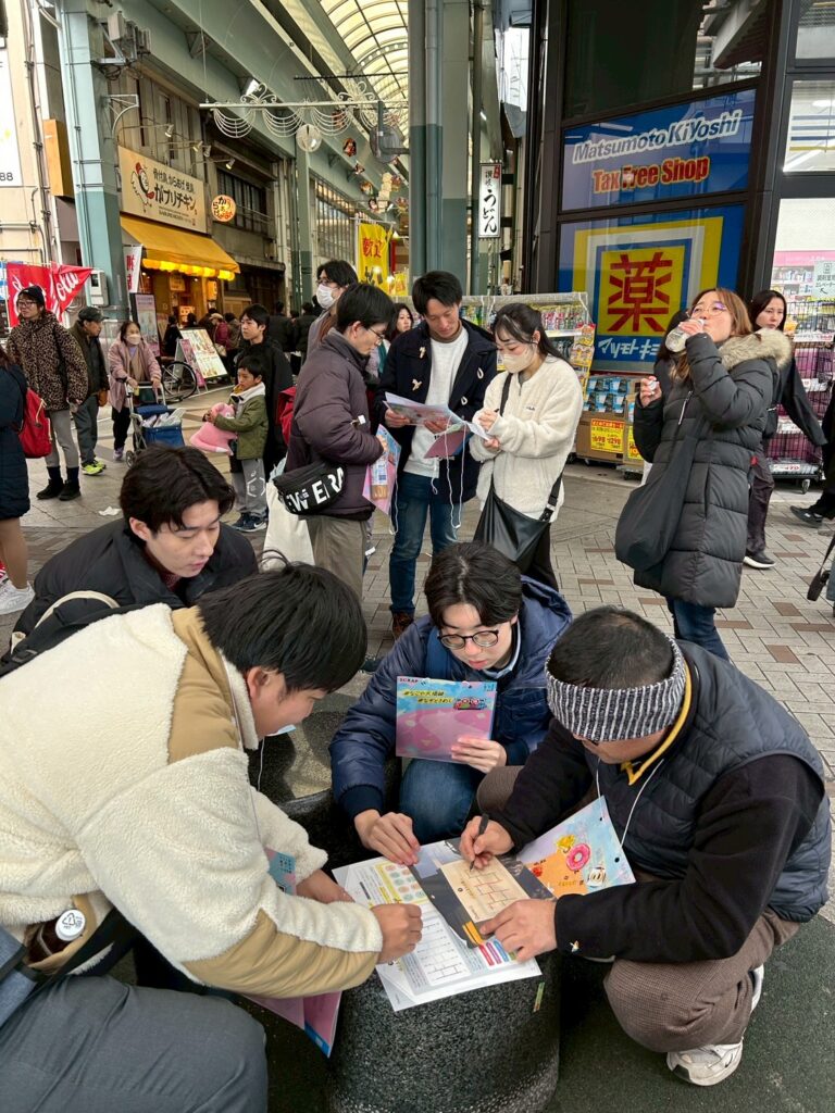 広大な大須商店街の中に仕掛けられた謎を解くため、チーム全員で街中を歩き回りました。ただ歩くだけでなく、協力して謎に挑むことで、自然と会話も弾み、適度な運動と脳の活性化を同時に行うことができました。