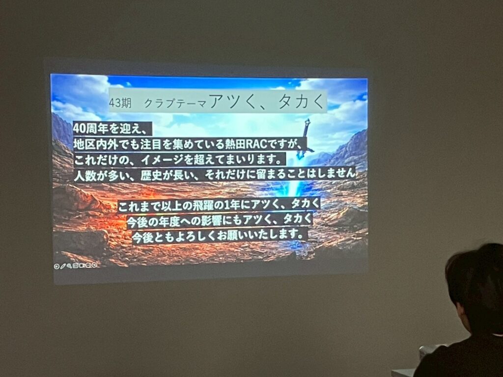 「新しい挑戦」を恐れない若々しいリーダーシップを、確かな経験を持つメンバーがガッチリと支える。このバランスが生み出す相乗効果こそが、次年度の熱田RACの大きな強みになると確信しています。